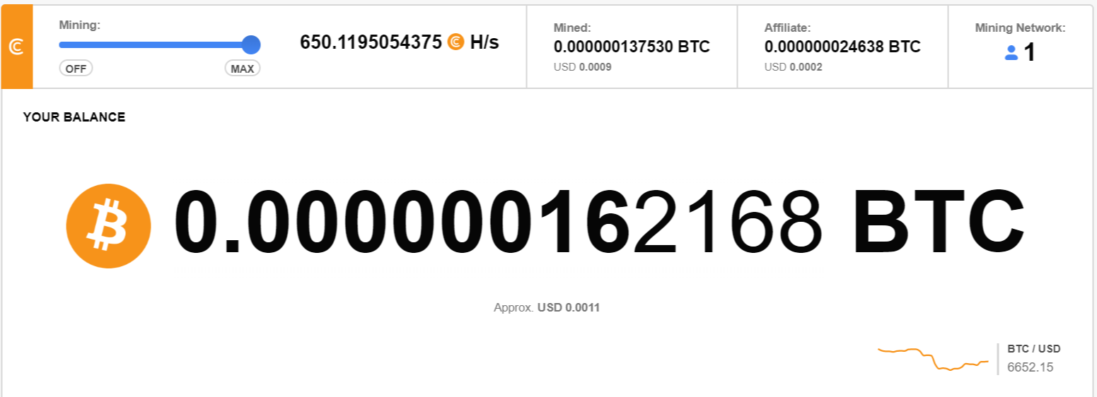 Mined : 채굴된 비트코인 수를 의미하며, 0.00001 BTC 부터 출금이 가능합니다. 전 오늘 시작한지라. 아주 소수점이 뒤로 뒤로 가네요.ㅋ