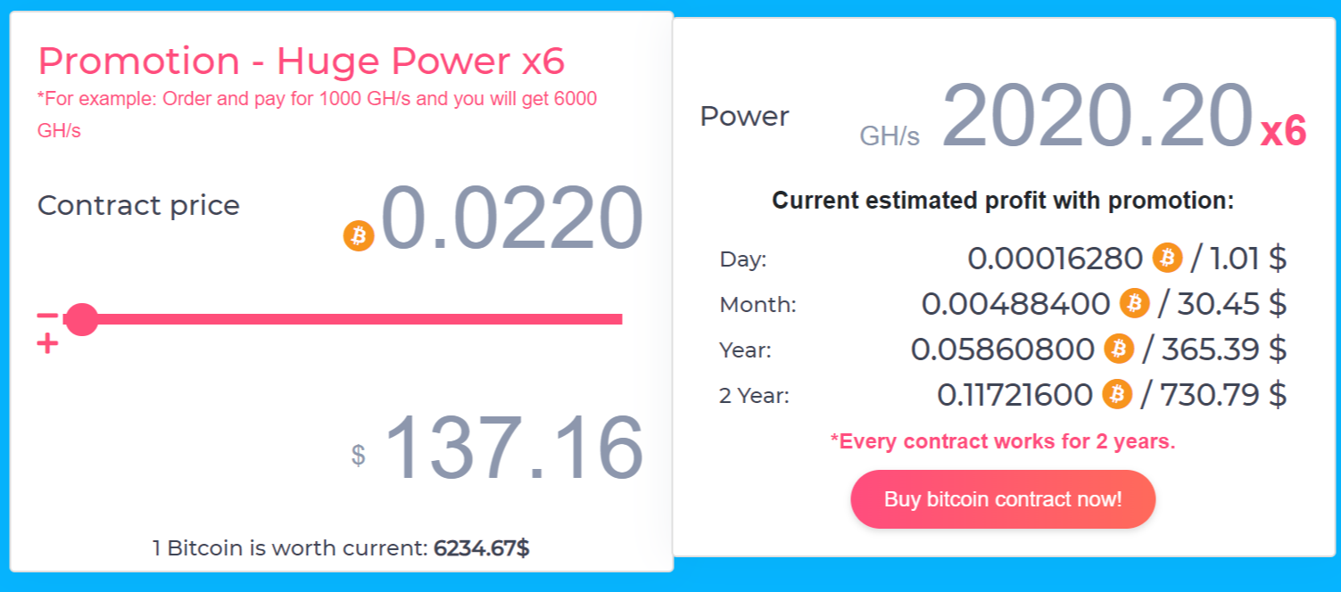 가입하면 2년 동안 일단 100Hash power를 제공하고, 비트코인이나 가상화폐를 대상으로 채굴파워를 증가시켜주는 사이트라 소개해본다.
