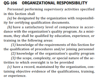 ASME IX QG (개정) Edition.2019에 따라 Welding supervisor에 대한 qualification 사항이 추가되었다.