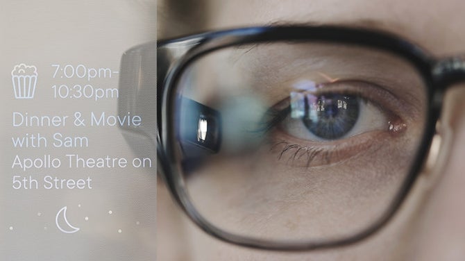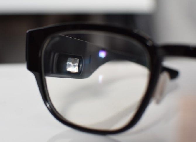 오른쪽 안경테 안에 작은 프로젝터가 내장돼 있어 다양한 정보를 오른쪽 렌즈를 통해 비춰주는 것이 기술의 핵심인데요. 스마트폰과 연결되어 날씨, 일정, 메시지, 검색 정보 등 다양한 실시간 정보를 가져와 사용자의 눈 앞에 보여줍니다. 마치 스마트워치의 기능들이 스마트 안경 안에 다 들어갔다고도 볼 수 있죠.