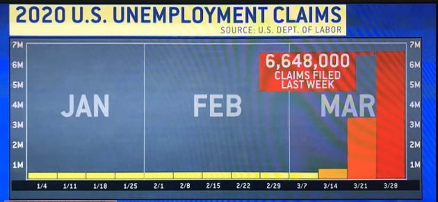 이번 주에도 가장 주목되는 건 9일 발표될 주간 실업급여 청구건수입니다. 지난주 청구자 수는 역대 최다인 664만8000명으로 전주(330만명) 기록을 두 배 이상 웃돌았습니다.