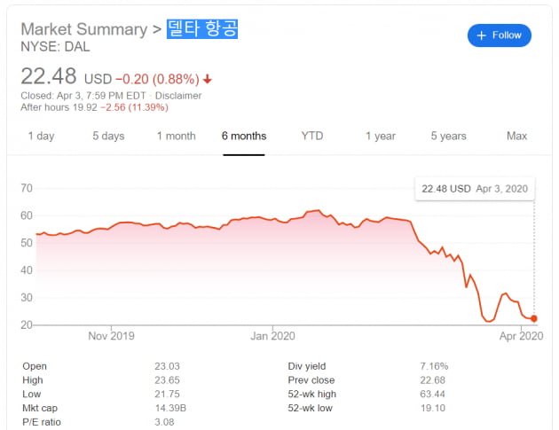 현재 미국의 항공기 승객은 작년동기의 5% 수준으로 감소했습니다. 델타항공의 에드 바스티안 최고경영자(CEO)는 지난 금요일 "2분기 매출이 90% 감소할 것이다. 매일 현금 6000만달러를 태우고 있지만 아직도 바닥은 아니다"라고 밝혔습니다.