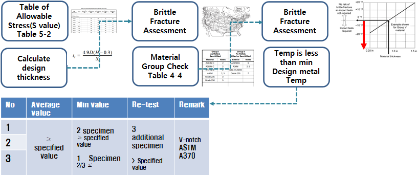 대개의 경우, Process 적으로 온도가 낮거나, Lowest one day mean temperature가 사용하는 Design Metal temperature 보다 낮을 때 검토하여야 한다. 순서는 아래처럼 도식화해서 보기편하기 다시 구성해보았다.