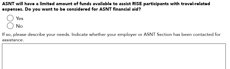 Participant Commitment: As a RISE participant, you will agree to maintain your ASNT membership during your tenure in the program and for no less than 3 years following graduation. You agree to attend all in-person sessions and complete all required work to graduate. And because ASNT volunteer leadership is the foundation upon which our Society was built, participants agree to actively engage in volunteer roles for ASNT or their local sections for three years following graduation from the program. The RISE leadership team will coordinate your volunteer activities to take best advantage of your skills, interests, schedule availability, and to meet the greatest needs of the Society. Should I Apply? RISE is intended for individuals who are in the beginning of their NDT careers (preferably no more than ten years’ experience) AND have a genuine interest in shaping the future of NDT and ASNT. Applicants can apply either with full employer support (including time away from the office and travel expenses), or with limited support (their time away only) requesting ASNT grant funds for travel expenses. Successful participants will be graduated with a Leadership Development Program certificate respected for future resumes and armed with the skills and knowledge necessary to ensure they are prepared and capable to confidently lead ASNT and NDT into the future. Apply today to be part of the first group to RISE to the next level of their careers. We'll provide the tools to be a leader of the NDT profession, we just need YOU. The deadline for Applications is May 15. |