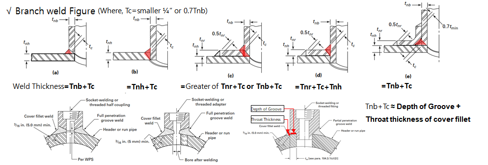 크게 보면 2가지 Case로 나뉘는데, 첫번째는 Material 두께도 판단하는 경우 Abutting 인 경우나 Main Run 배관의 경우에 이것으로 판단하면 되겠다. 다른 하나는, 지관 형식의 Branch로 이어지는 배관의 용접 두께일 경우다.