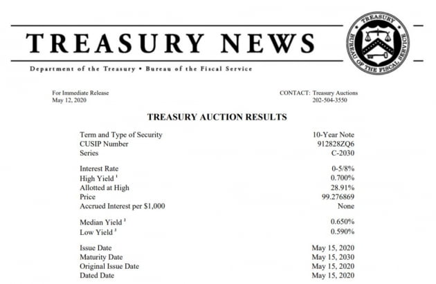 지난 11일 3년물 노트는 연 0.23% 금리에 420억달러 규모가 무리없이 팔렸습니다. 12일에 내놓은 10년물 320억달러 어치는 2.69배라는 높은 응찰률 속에 금리가 10년물 사상 최저인 연 0.70%에 결정됐습니다. 지난 4월 250억달러 규모 입찰에서 응찰률 2.43배, 금리 0.782%를 기록한 것보다 나은 조건입니다.
