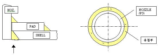 ⒜셀에 노즐용접시 PAD를 백킹재로 이용하여 노즐과 PAD를 동시에 작업