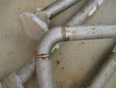 Bolt부위나 Support와 맞닿는 부위가 취약하기 때문에 Bolt 체결대신 용접을 한다거나, 체결 후 도장을 하는 방법도 하나의 방법입니다. Support의 경우, Corrosion Bar를 설치하거나 아래와 같이 해당부분에 Non-metallic wrap을 해주는 것도 하나의 Solution입니다.