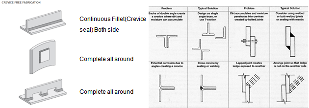 이 방법은 Gap을 최대한 제거하거나 Seal weld 혹은 맞닿는 면은 조정하여 Stagnant water를 혹은 빗물을 줄이는데 중점을 두고 있습니다. 그것이 어려울 경우 Material Upgrade를 고려해보아야 합니다.
