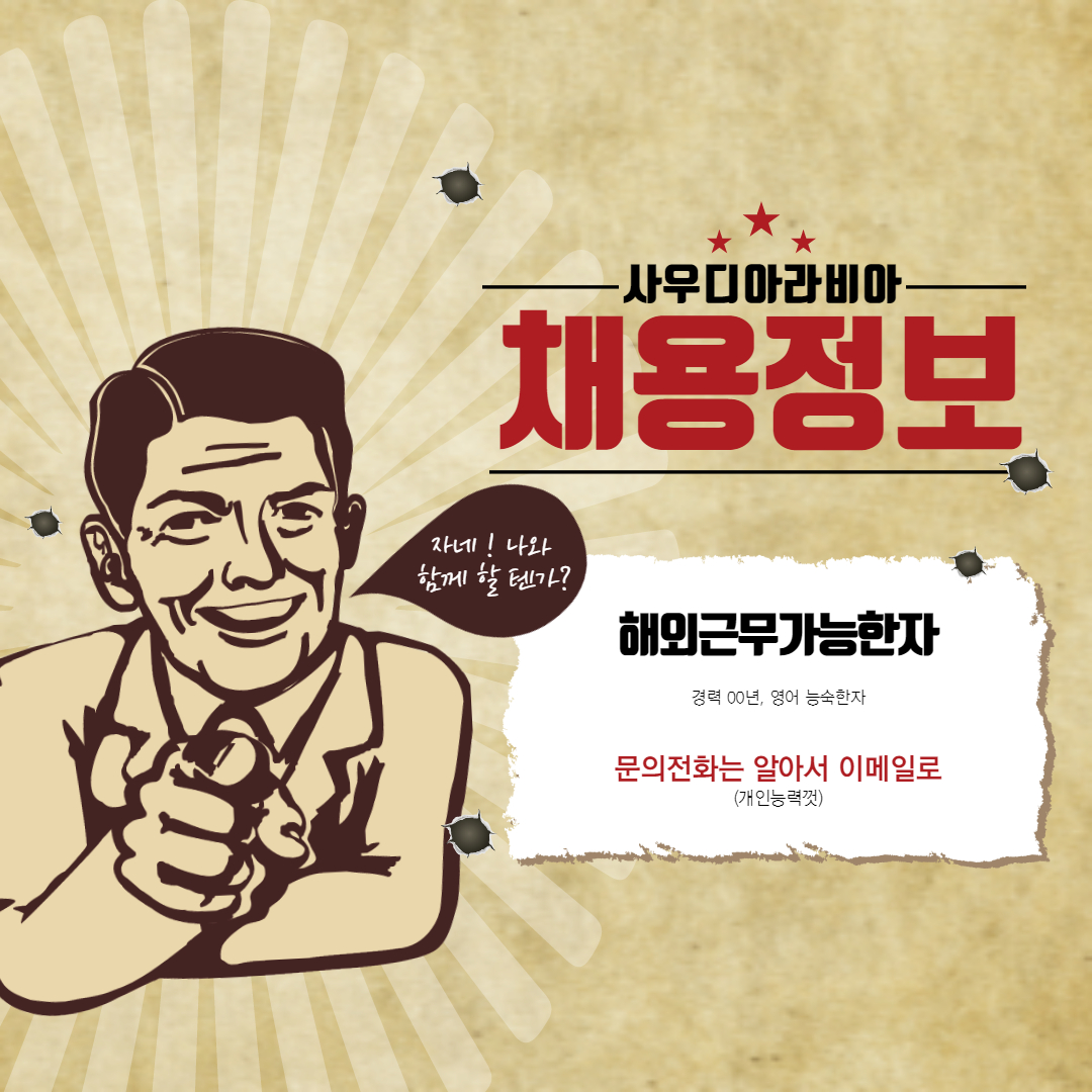 오늘은 간만에 사우디아라비아 채용정보 관련 포스팅하겠습니다.