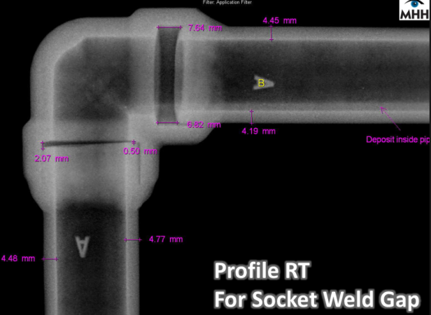 물론 이렇게 진행하면 공정을 약간 뒤처질 수 있으나 관리측면에서 배관에서는 좋습니다. 혹은 요구되지는 않지만 추가적으로 RT Random Verification을 넣어놓으면 아래와 같이 찍어서 확인도 가능합니다.