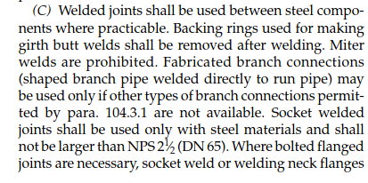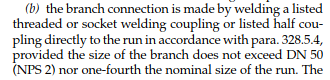 위에서 언급한 것처럼 Process Piping 31.3에서는 아래와 같이 관경 NPS 2이하에서만 사용이 가능하도록 명시하고 있습니다(does not exceed NPS 2)