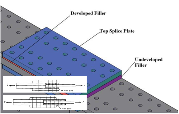 위 그림에서 보듯이 Developed Filler의 경우는 Splice 부분많이 아니라 연결부위에서 더 Extension이 되어 있습니다. 이 Shim plate는 추가적인 Bolt로 부착이 되며, 연결이 되면 연결부위의 한 부분이 됩니다.