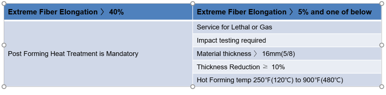 위의 재질을 UCS와 일치시키기 위해 P-No1 Grade.1의 Carbon과 Low Alloy Steel중의 하나라고 가정하고, 계속해보겠습니다. 위의 Ellipsoidal Head의 Forming Strain은 45%라고 가정(계산값은 40%이지만)하면 Post Stress Relieving을 하여야하는 구간에 들어가게 됩니다.