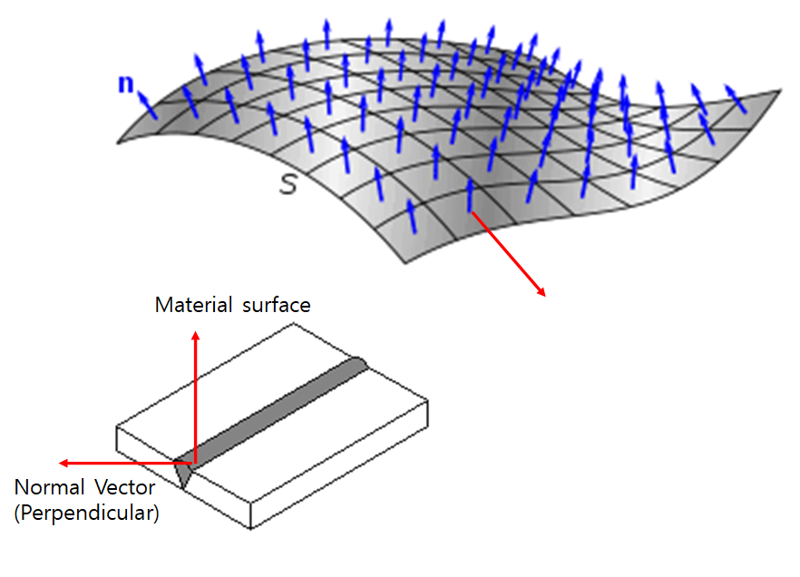 "Each Specimen shall be oriented so that the notch is normal to the surface of the material" 여기서 의미하는 Normal은 Normal Plane의 방향을 의미합니다. Material surface의 방향의 Perpendiculr 즉 직각방향을 의미합니다. Material Surface가 vector라고 가정하면 그에 직각 방향으로 Notch를 만들어야 한다는 의미입니다. 그림으로 보면 아래와 같습니다.
