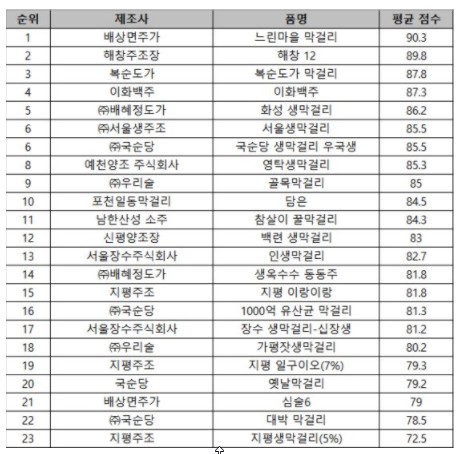 아래는 전문가 들이 테이스팅 순위를 매겨 놓은 자료입니다. 막걸리 고르실때 참고하시면 될거 같습니다. 사실 1위는 저도 이견이 없습니다. 느린마을은 부어놓으면 참 뽀얗고 뭔가 우유마시는 느낌도 있거든요. 있습니다. 단맛도 합성감미료 맛이 아니고 숙성된 기분좋은 단맛입니다.