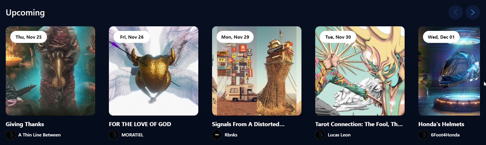 가입후 Drop쪽에 가보시면 현재 구매가 가능한 NFT가 뜹니다. 제가 구입한 것은 100USD 정도 어제 바로 새벽에 Live로 뜬 NFT를 구입을 했고 무려 아직은 카드 결제가 가능합니다(거의 대부분의 가상자산 관련 카드 결제는 막힌거 알고 계시죠?) 여기는 문을 연지 얼마 안되서 아직 결제가 가능한거 같습니다.