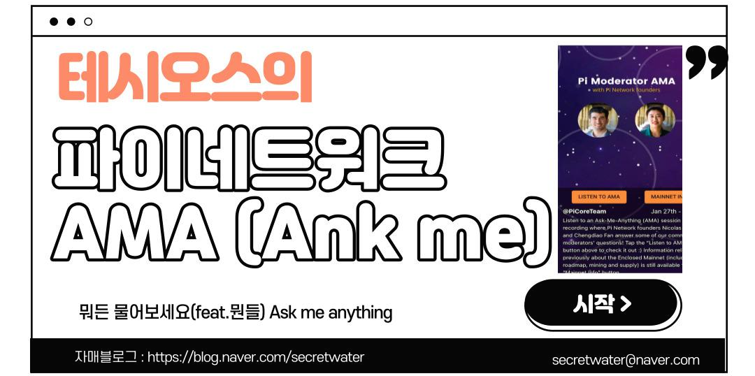 1월도 어느새 끝나가고 있네요. 파이네트워크의 기대하던 KYC는 아직 시작되지 않은 상태이지만, 뭔가 진척되고 있다는 Signal은 강하게 오고 있습니다. 물론 여러분들이 기대라는 시세? 얼마예요? 하는 궁극적인 질문은 아직 해결 혹은 해결되기 까지는 많은 시간이 남은거 같습니다. 오늘은 파이 공홈에 뜬 AMA에 대한 질문에 대하여 살펴볼까 합니다.