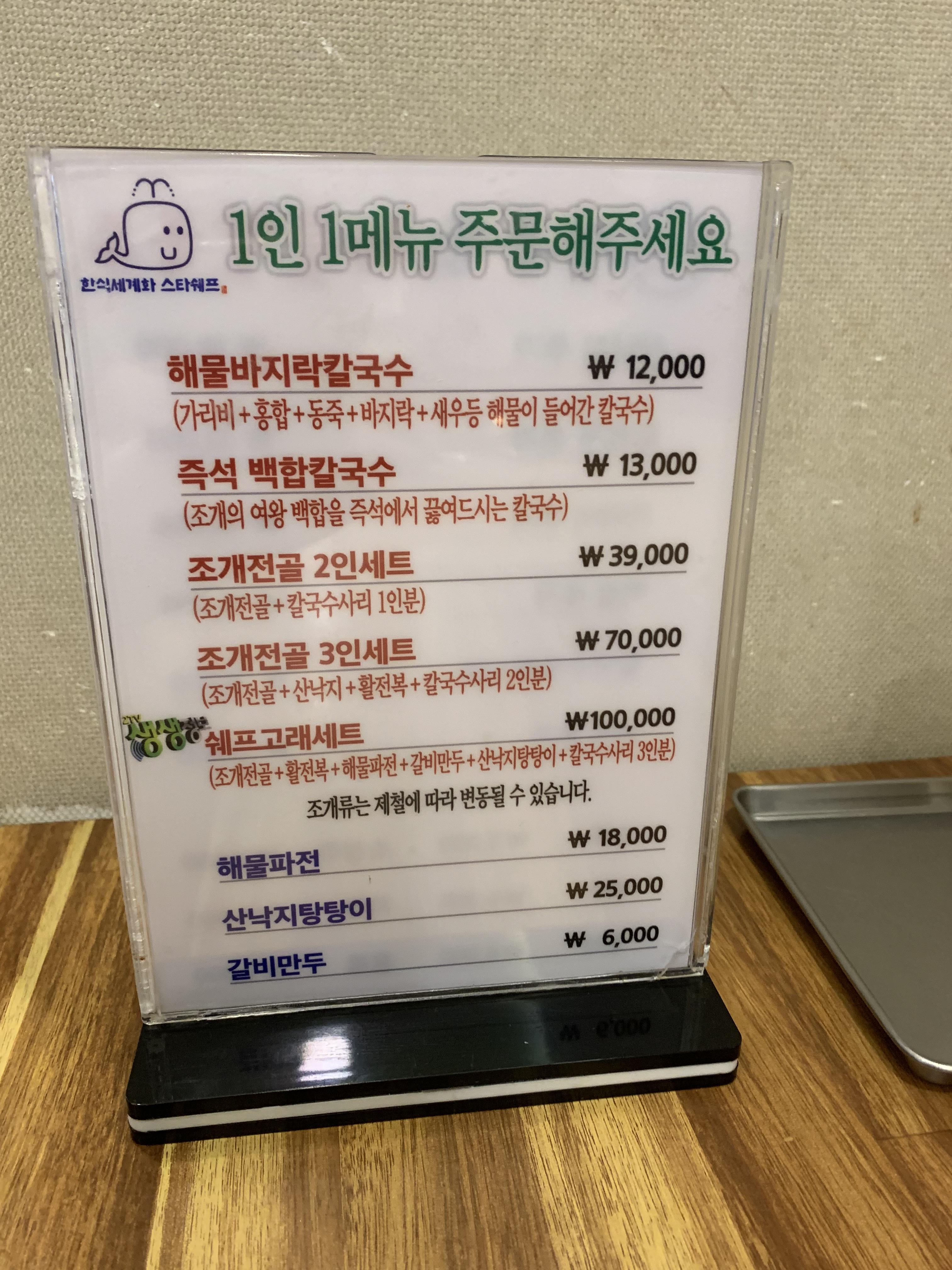아무래도 해물이 많이 들어가서 가격대는 있으나 해물칼국수 중에서는 "갑"입니다.