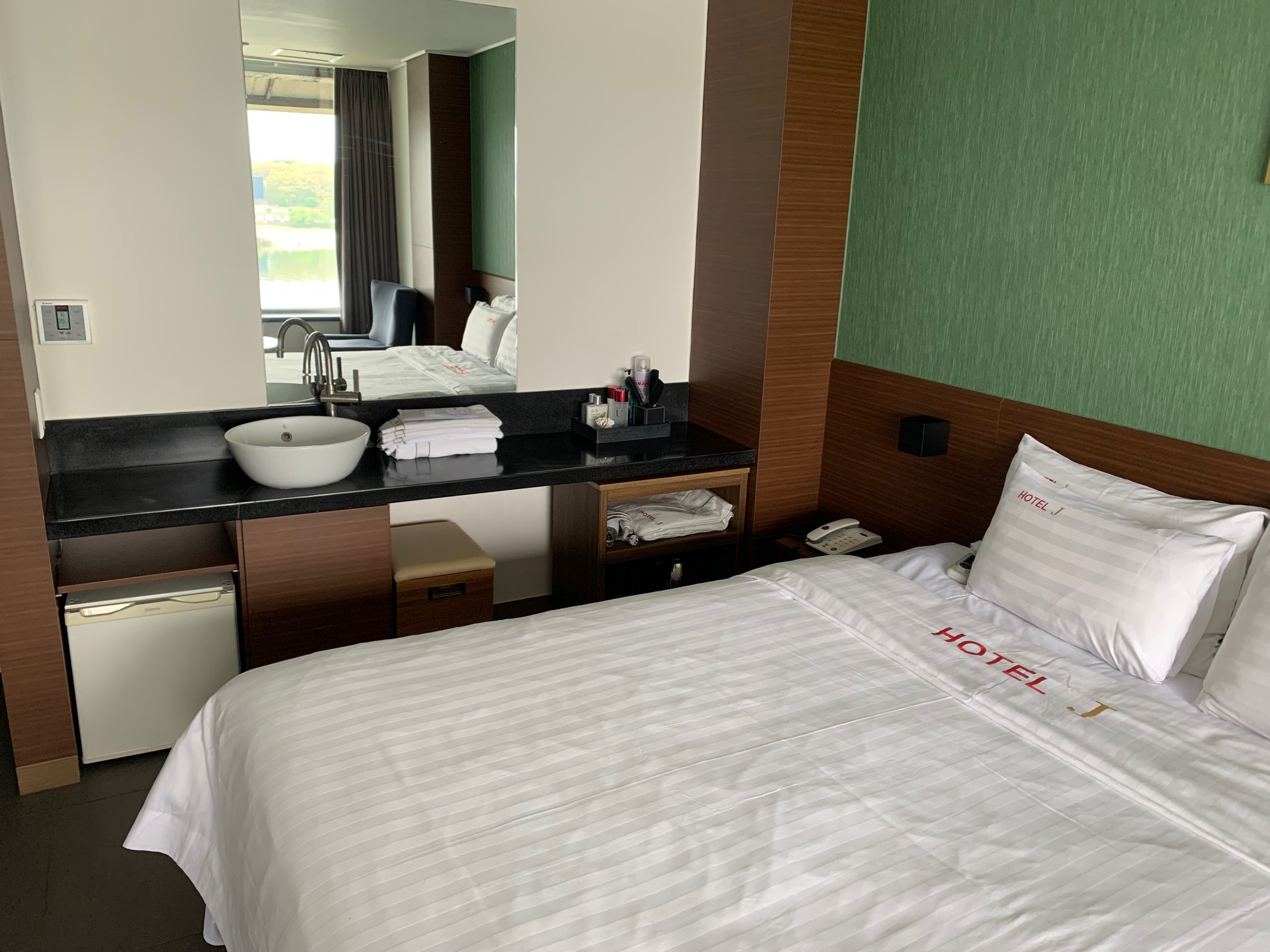 방 크기나 욕실 침대는 편한 편이었습니다. 세면대가 침실쪽에 있는 건식이라 좀 의아하긴 했는데 간단한 손 씻는 용도로 사용하면 편할 거 같습니다.