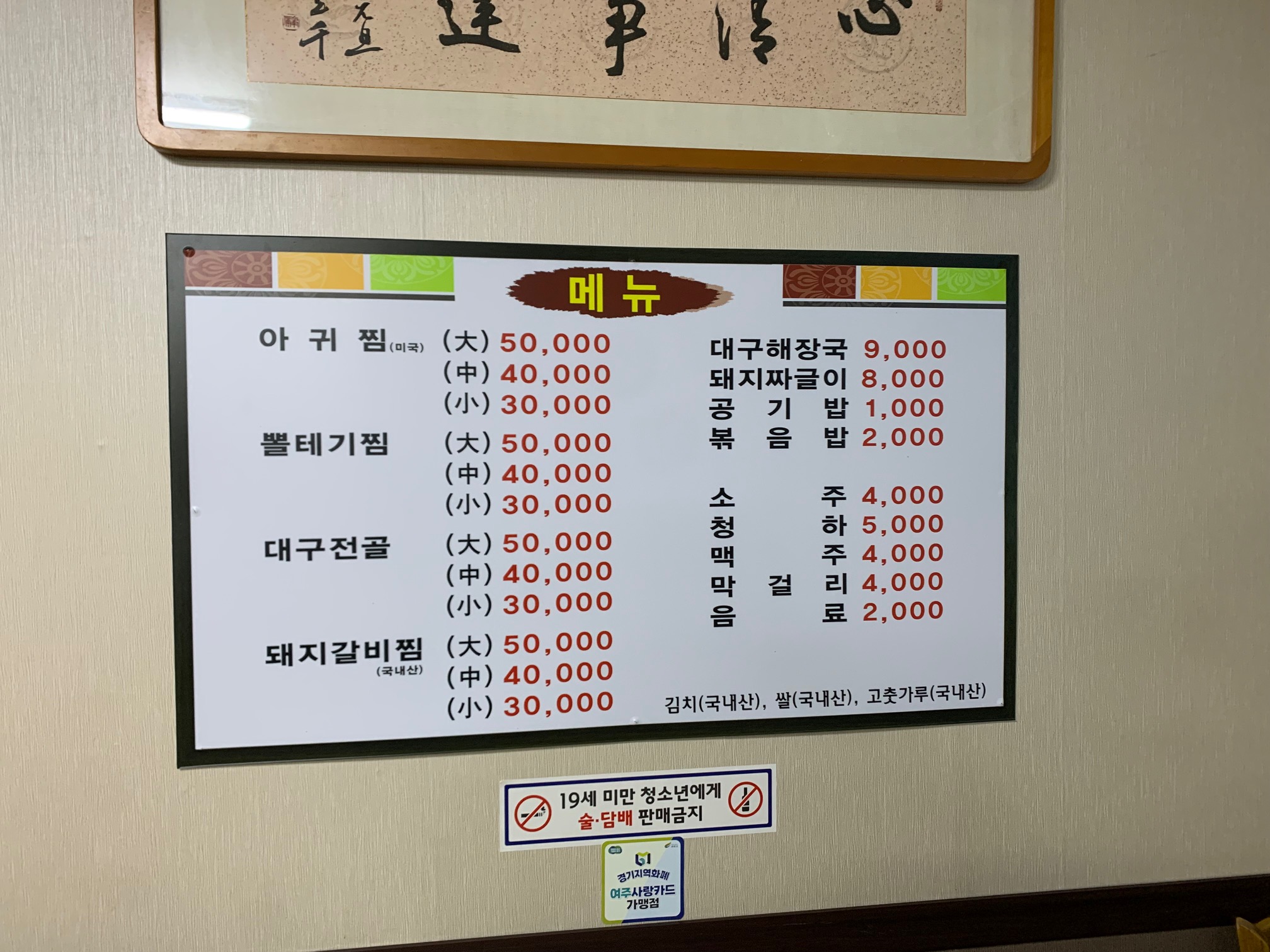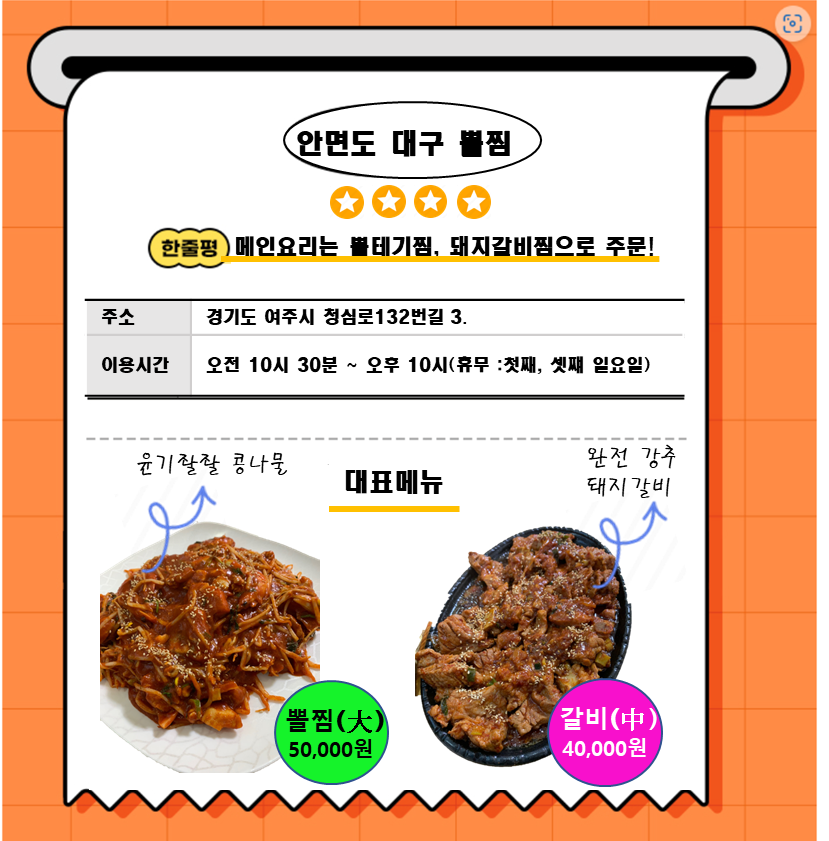 2.주요메뉴 : 대구 뽈찜, 돼지갈비