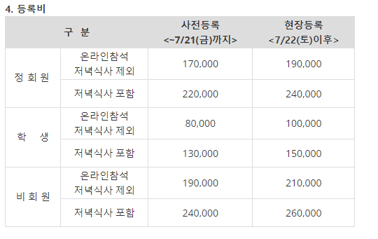 아까와 같은 추가비용 및 세미나 등록비용이 발생합니다.