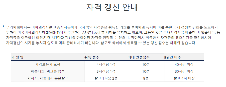 오늘은 비파괴 국제자격증(ASNT) 5년 마다 갱신점수 채우는 법에 대하여 알아보겠습니다.