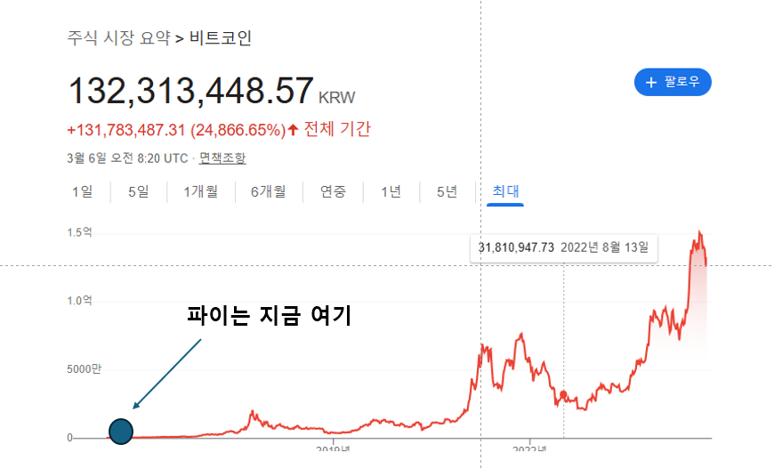 아직 파이는 극초기입니다. 비트코인과 비교하기에 저희는 지금 아래 그림에 있습니다.