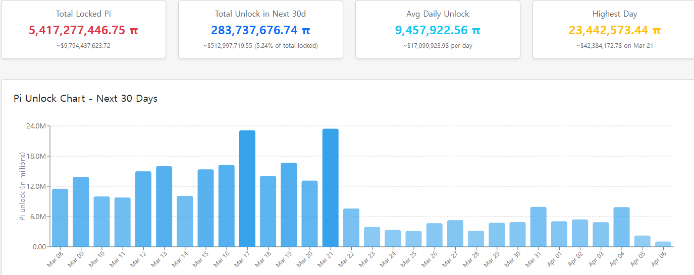 앞으로 30일 동안 2.8억개 정도의 파이가 언락이 되게 되어 있고,