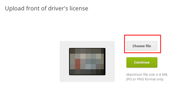 먼저 신분증 앞면을 등록해주셔야 하는데요. 오른쪽 Choose file을 선택하시고 신분증 앞면을 선택 등록해주시면 됩니다.