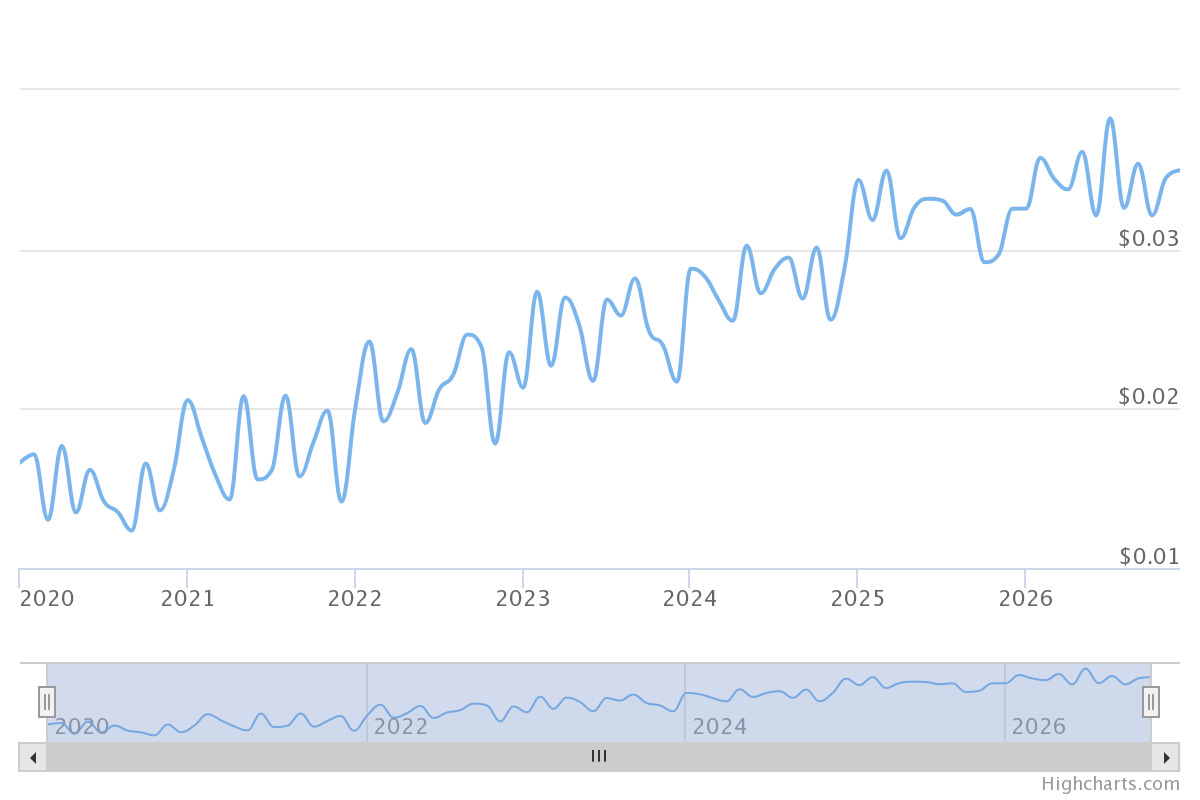 현재 기준 0.007 USD정도 가치를 가진다고 나와있고. 2026년 기준 0.034 USD 정도의 가치를 가질 것 같다고