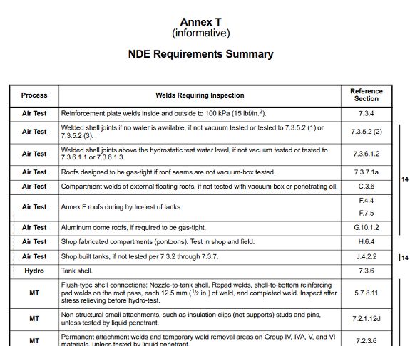 Annex.T에 반영되어 있다. 추가적으로 Annular Plate to Shell Plate 첫단에 대한 NDE는 Hot Diesel을 적용하면 Right Angle Vacuum Box Test 가 면제다. 이런거 가지고 싸우지 말자.